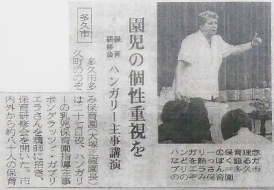 | 2001年1月 | のぞみハンガリーよりポングラーツネー・K・M・ガブリエラ女史(ブタペスト14区 乳児保育園指導主事)が来園。