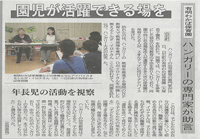 | 2001年1月 | 大塚恭子(当時:主任保育士)がハンガリーのマイバ乳児保育園・マイバ幼児保育園を視察